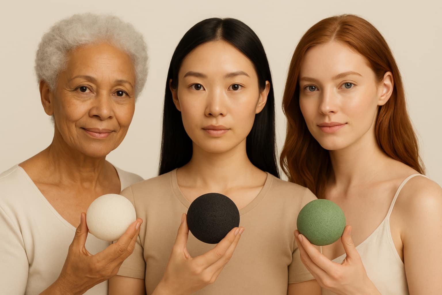 Pack 3 éponges Konjac, Charbon, Thé vert