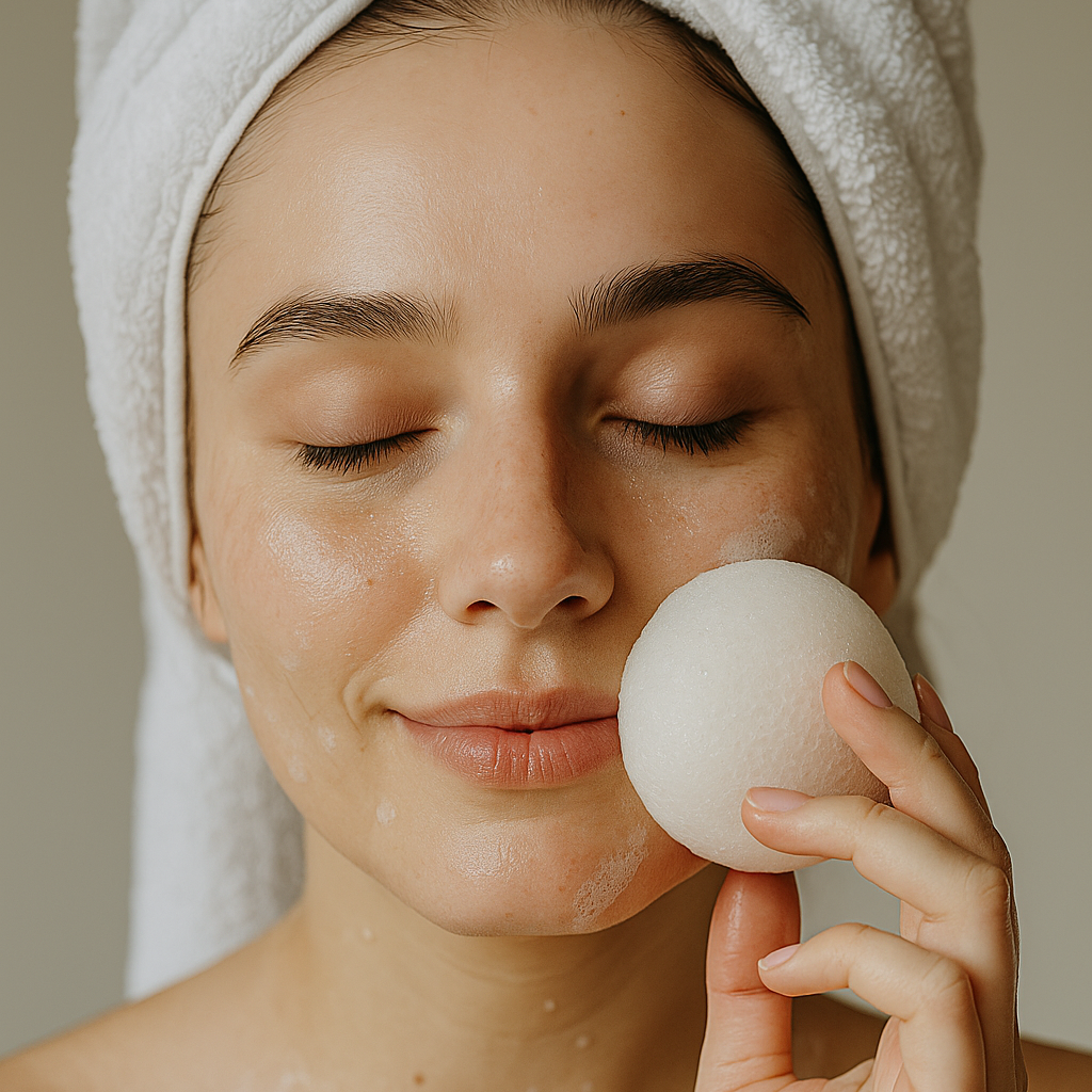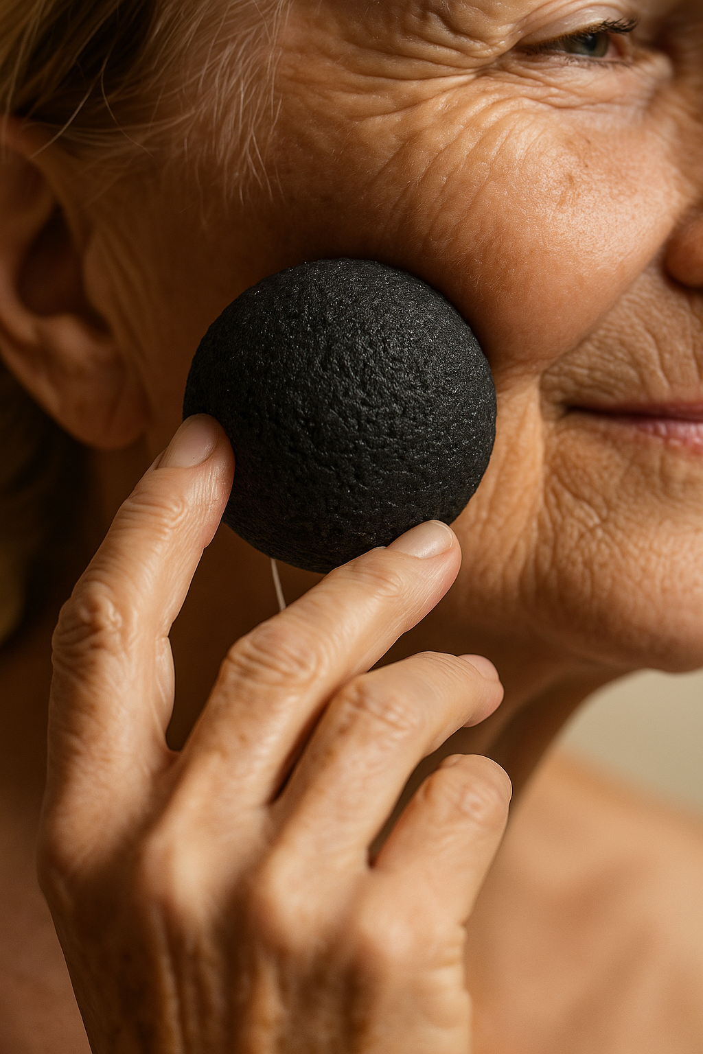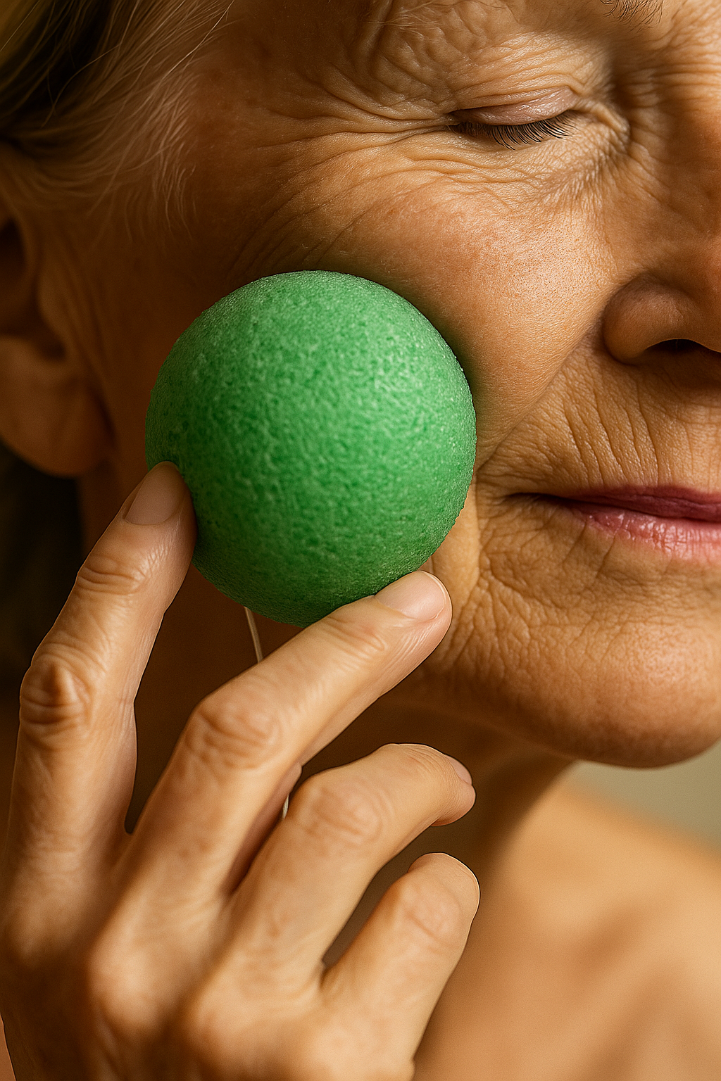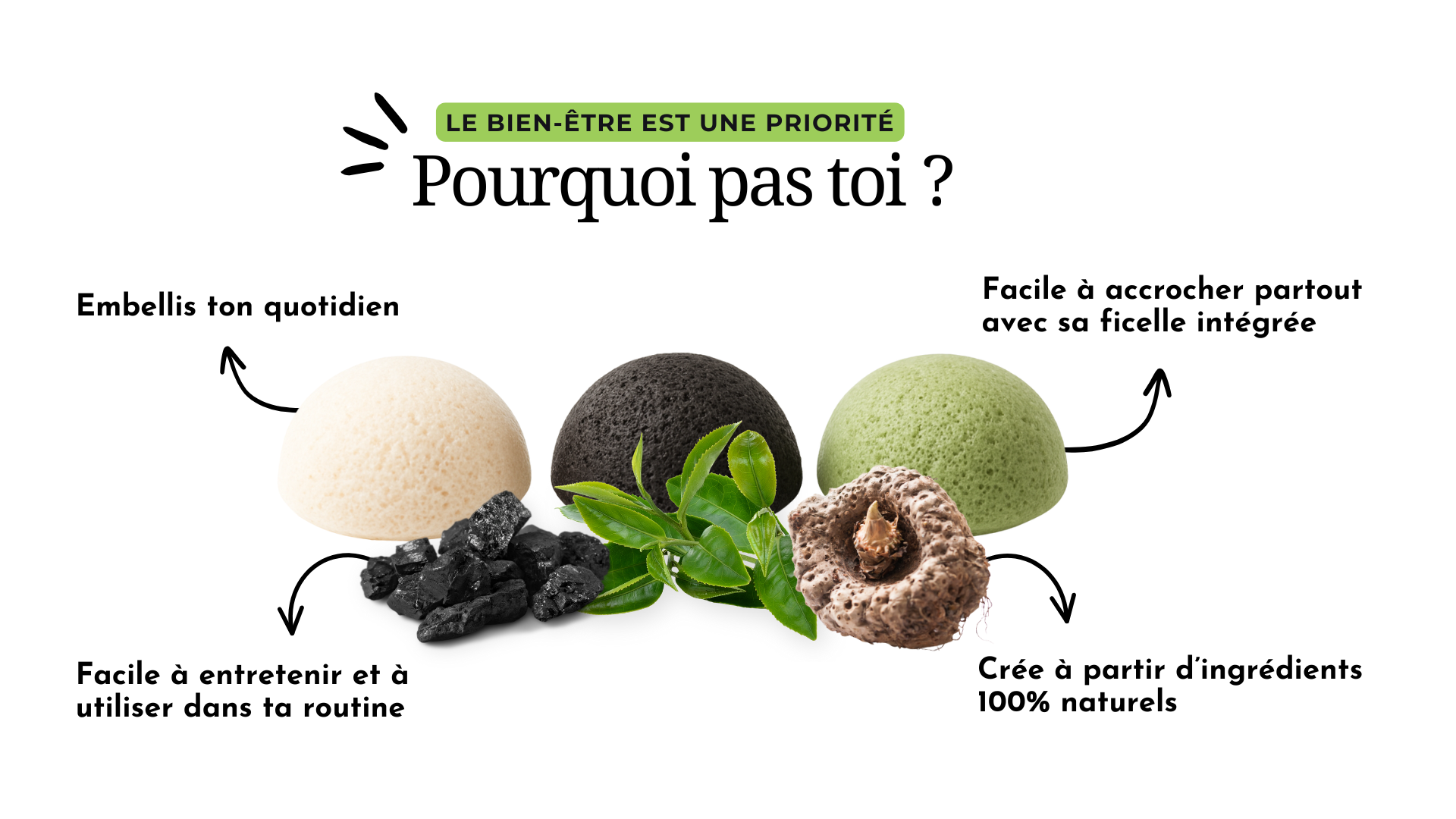 L’éponge Konjac, charbon ou thé vert nettoie en douceur sans produit (même juste avec de l’eau).
